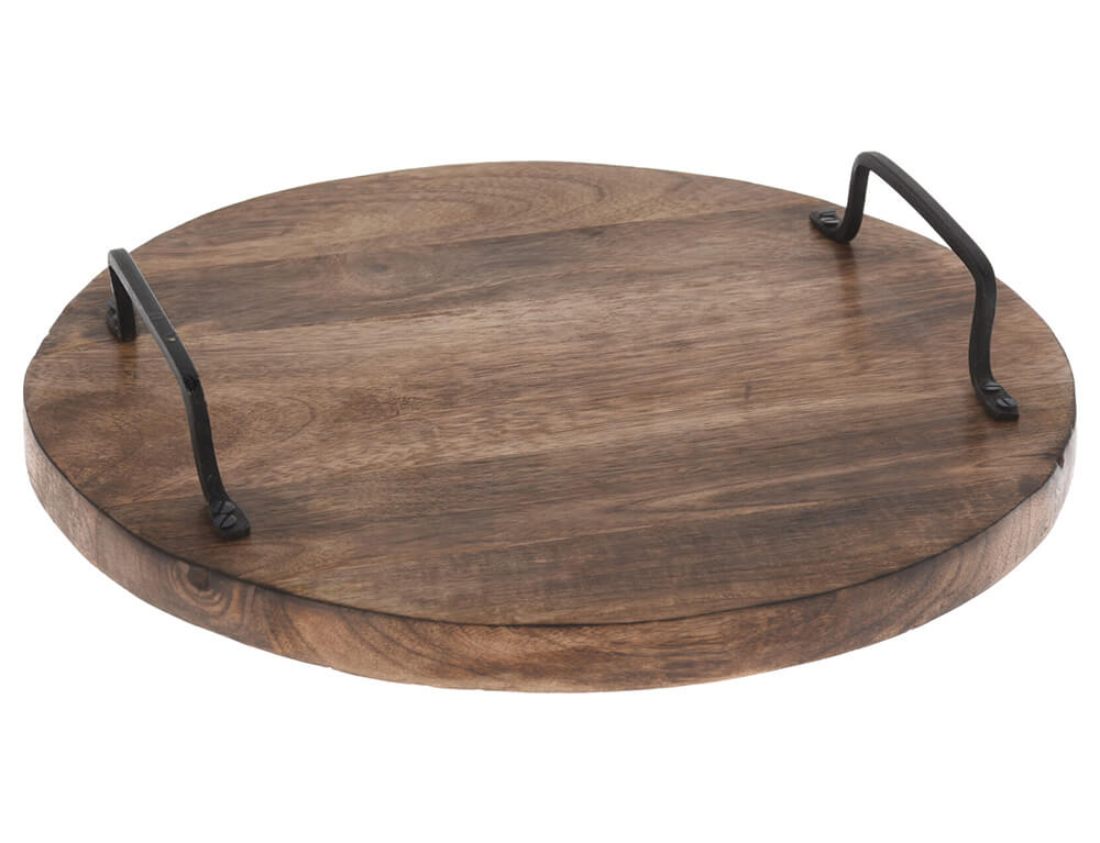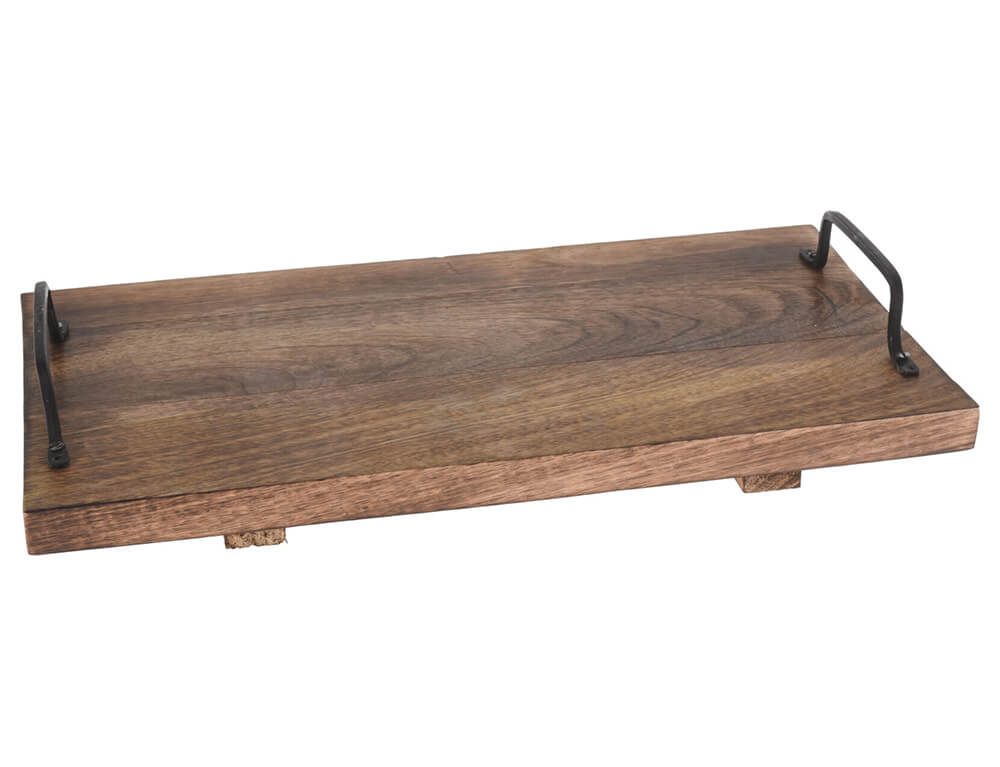 Δίσκος σερβιρίσματος με μεταλλικές λαβές Ξύλο Μango, 56.5 x 30 x 6cm