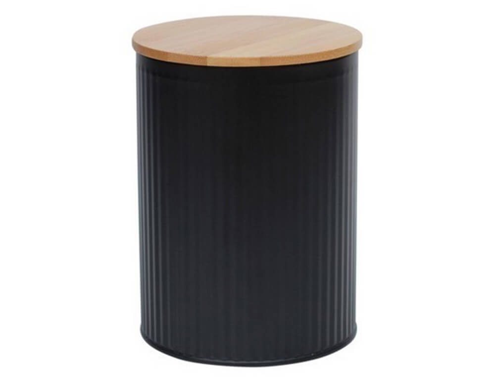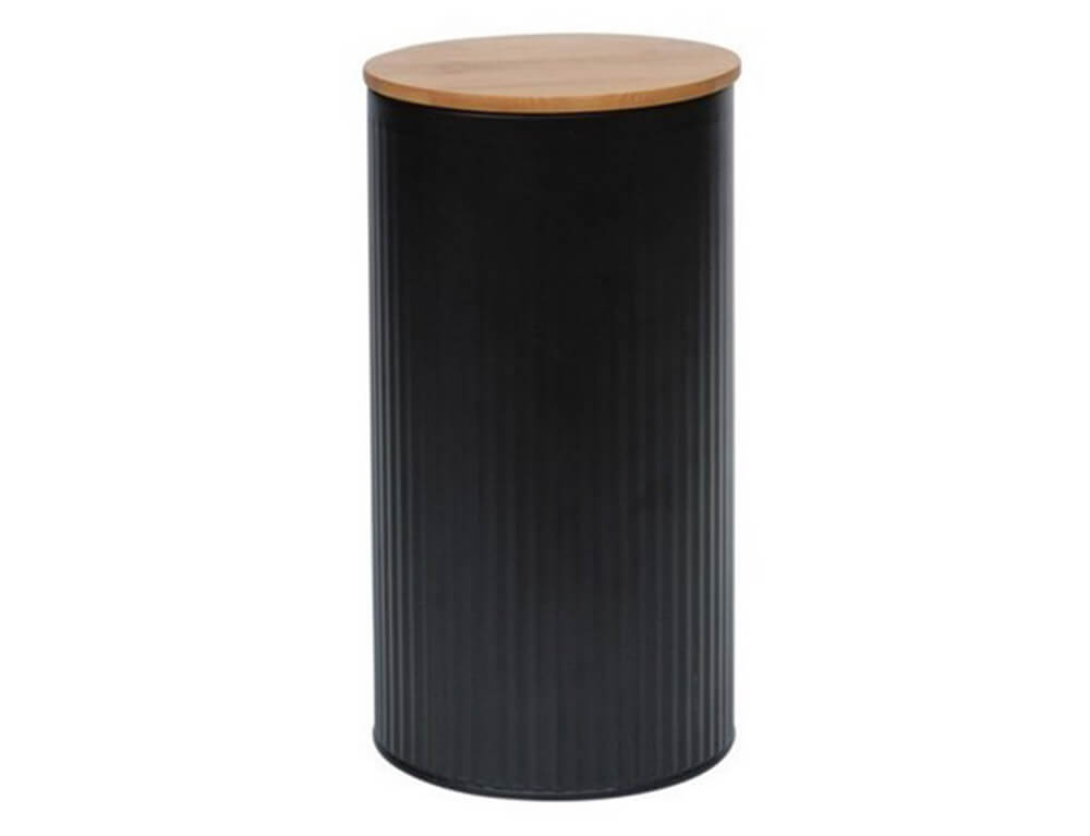 Μεταλλικό Δοχείο κουζίνας Excellent Houseware με καπάκι από μπαμπού και διαστάσεις Φ10cm x 15.5cm - Μαύρο