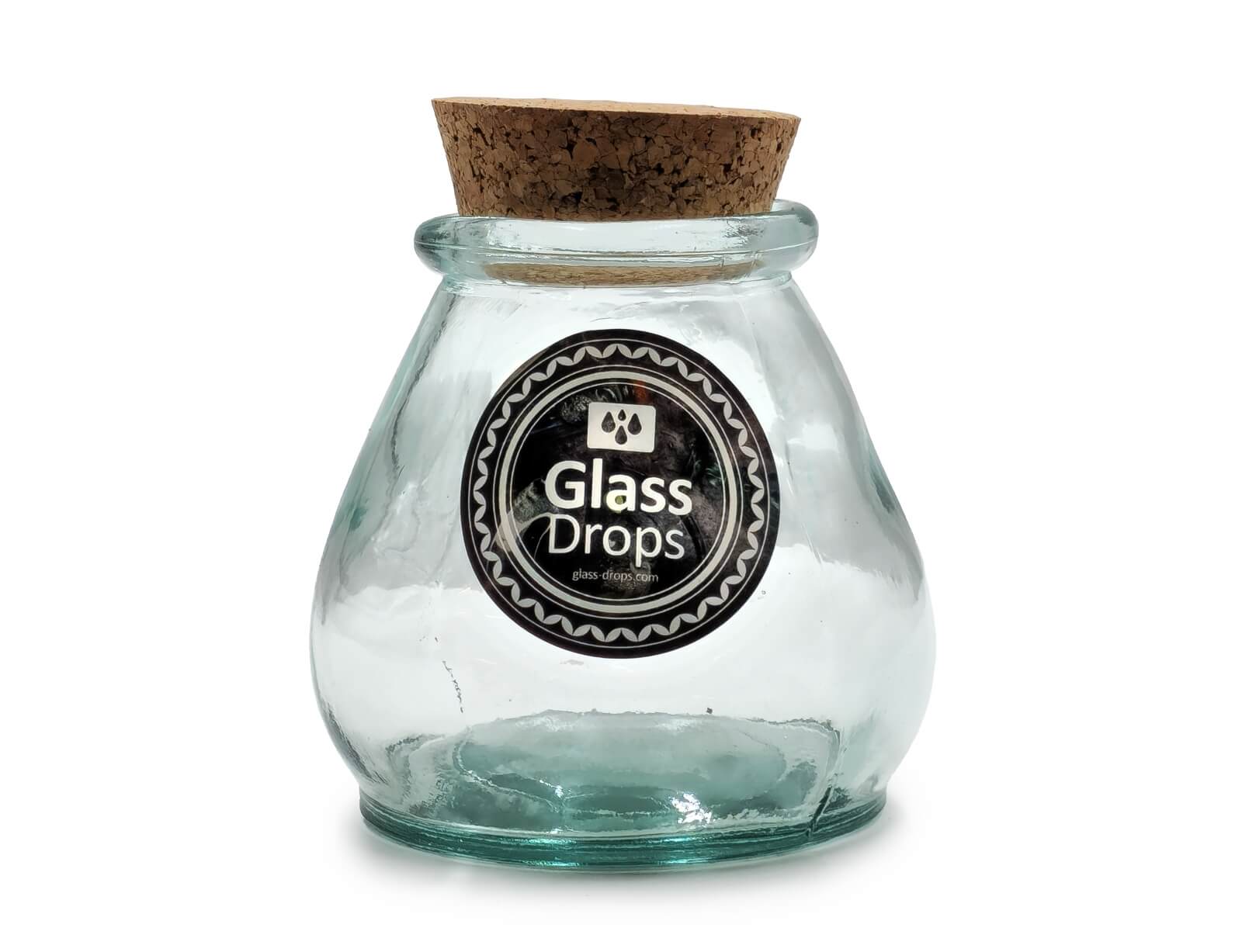 Δοχείο με πώμα φελλού Glass Drops Sac (5919) Aπό 100% ανακυκλωμένο γυαλί, Xωρητικότητας 380ml, Διαστάσεων Ø 10 x Υ 10 cm