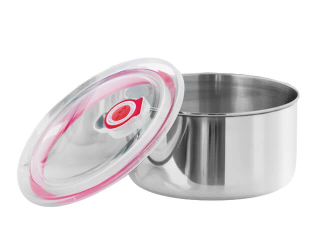 Αεροστεγές Δοχείο Φαγητού Βιομάρ 8N18 Inox με καπάκι με βαλβίδα, διάμετρο 18cm, βάθος 8.5mm και χωρητικότητα 2.20L