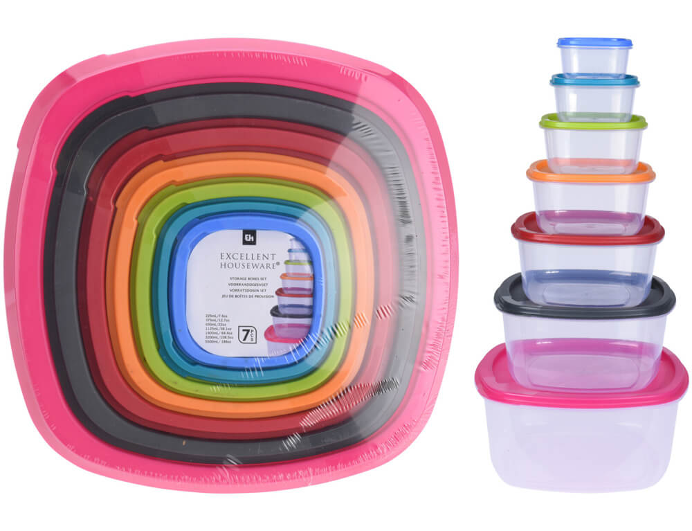Σετ Πλαστικά Δοχεία Φαγητού Excellent Houseware με χωρητικότητα 225ml, 375ml, 650ml, 1125ml, 1900ml, 3200ml, 5500ml - 7 τεμάχια