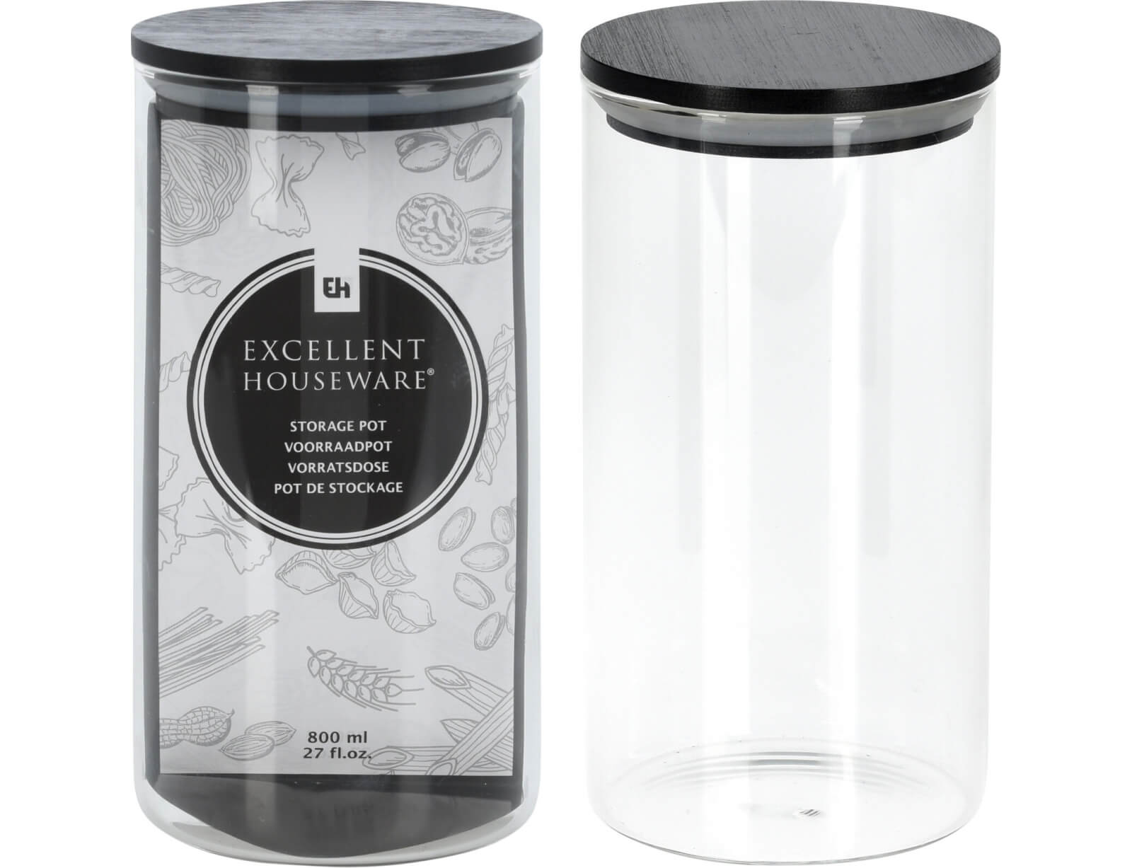 Γυάλινο δοχείο αποθήκευσης Excellent Houseware χωρητικότητας 800ml