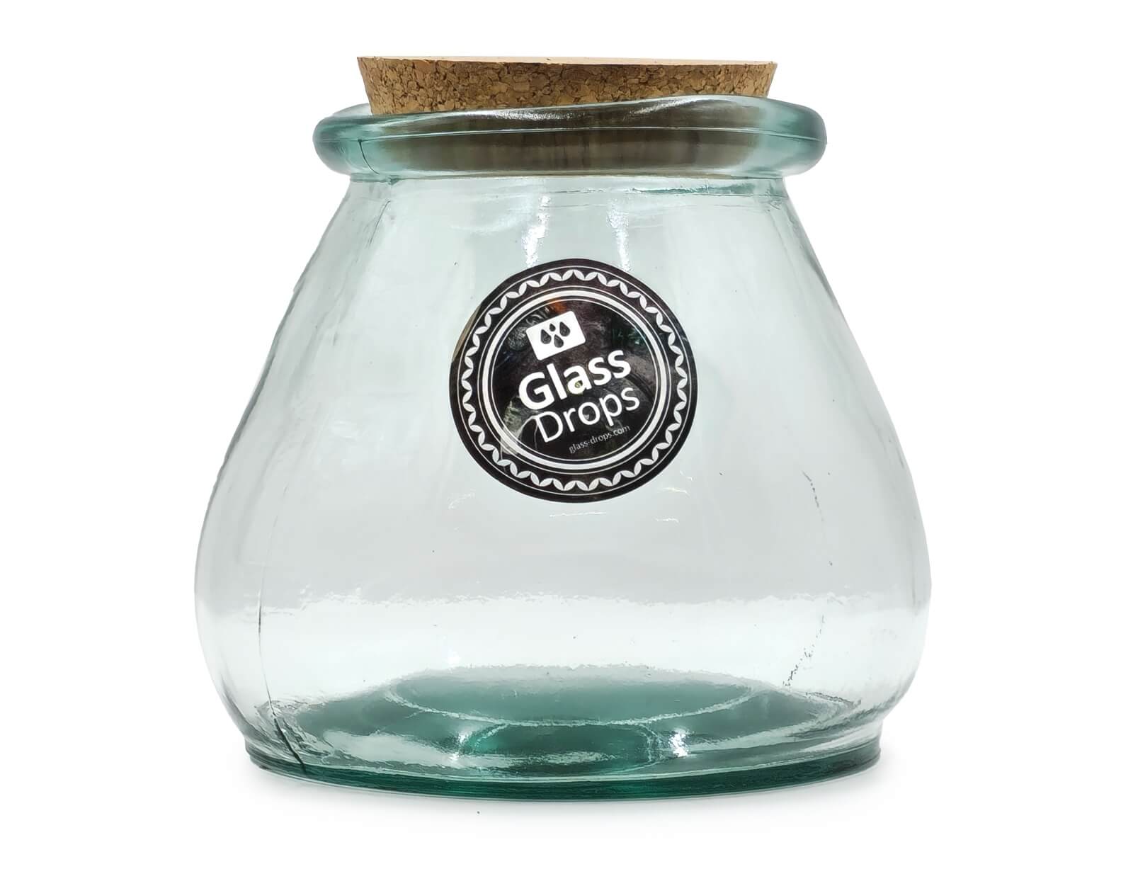 Δοχείο με πώμα φελλού Glass Drops Sac (5917) Aπό 100% ανακυκλωμένο γυαλί, Xωρητικότητας 1.5L, Διαστάσεων Ø 15 x Υ 15 cm