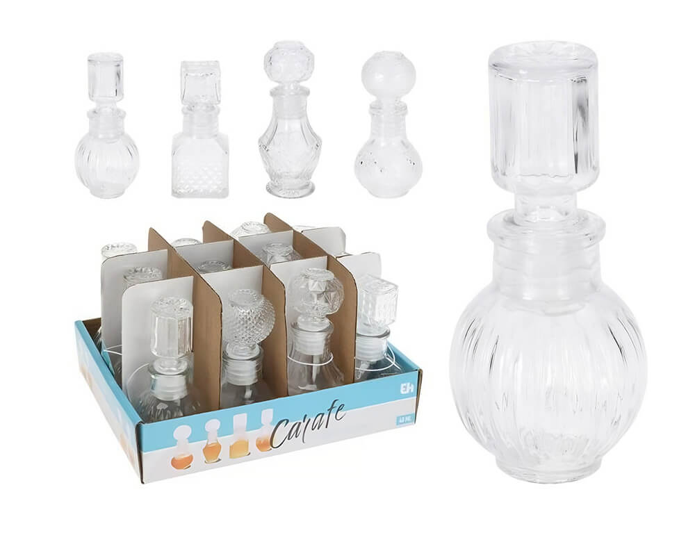Μπουκάλι με πώμα Excellent Houseware γυάλινο, χωρητικότητας 50ml, σε 4 επιλογές σχεδίου
